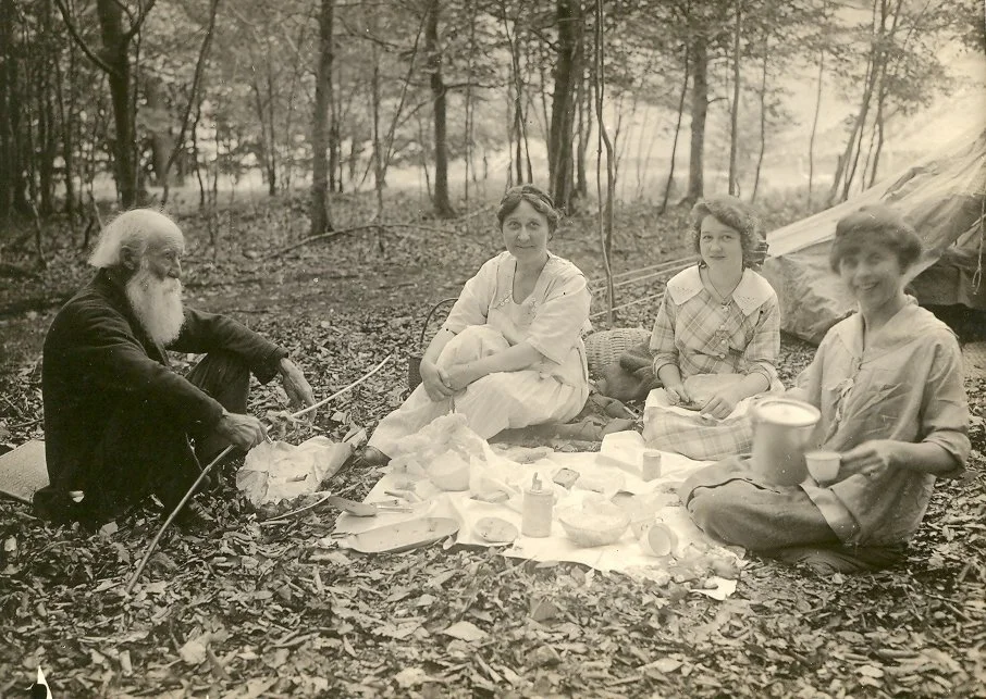 Literary naturalist John Burroughs and friends enjoy a picnic in the Beechwoods near Woodchuck Lodge